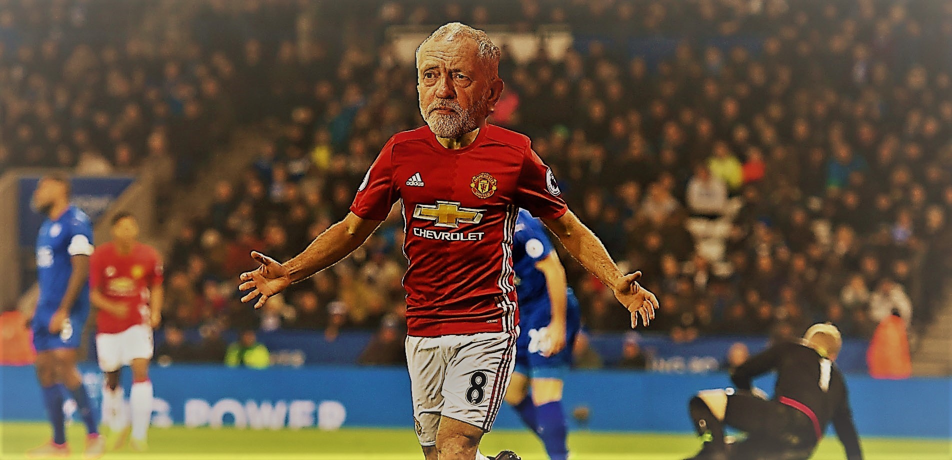 Labour leader Jeremy Corbyn enjoyed mixed fortunes on his first Premier League start for Manchester United, bagging a header from a corner but then being dismissed on the hour mark by referee Martin Atkinson for racially abusing Leicester striker Jamie Vardy.